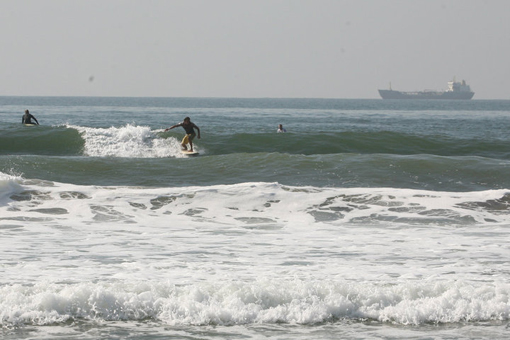 Во множественном числе, местные парни уже седлали волны, мы быстро переодевшись слегка размяв руки-ноги ринулись к ним в прибой полутора метрового бичь-брейка. И первый заход тренировочного катания, с незначительными перерывами продлился у нас без малого пять часов!