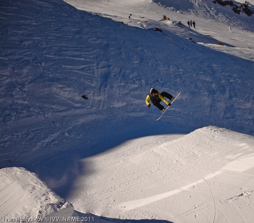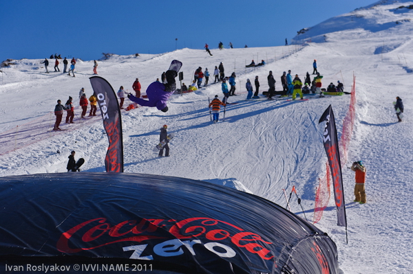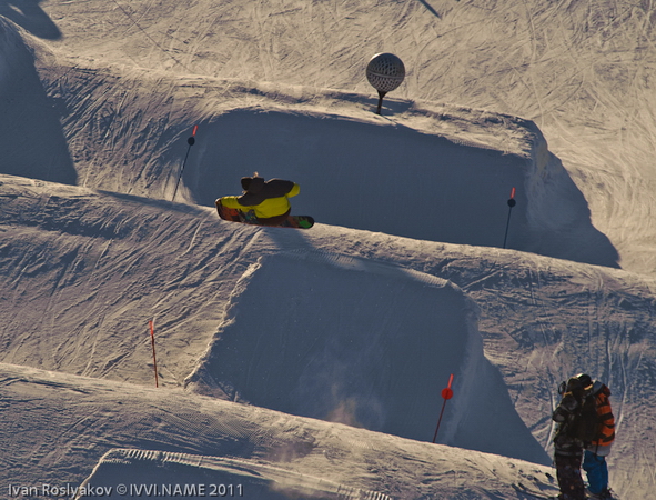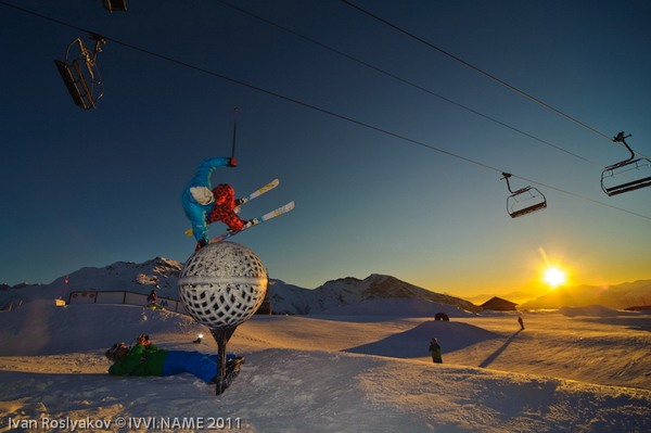 Первая неделя в Аво была разгрузочной, ведь основная масса фестиваля должна была подтянутся на следующую неделю на которую были запланированы все мероприятия. У нас на выбор было два парка это Arare, в нем была серия из 5 бигов самый маленький из которых был около 10 метров, а большой около 17 метров, соседняя линия была джибовая, плюс учебная подушка от Coca-Cola. Там было отснято множество follow проездов с райдерами, самым деятельным оказался Алексей Соболев из Новосибирска, который в перерыве между Лааксом и Авориазом успел съездить в Les 2 Alpes на Кубок Мира по слоупстайлу. Леха показал как и всегда стильное и техничное исполнение трюков, хотя этот выезд в Европу по сути был его раскаточным после перерыва.