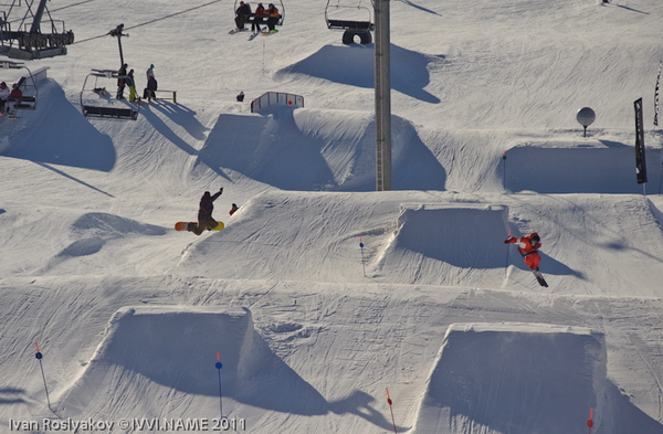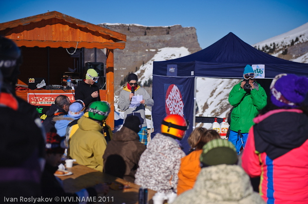 На следующий день состоялся 2 звездный TTR слоупстайл контест в верхнем парке Arare, в нем приняли участие не только русские, но и европейские райдеры. Этот день преподнес нам неприятный сюрприз - сильнейший ветер, который за две недели поднялся впервые и в этот единственный день. Весь парк был окутан снежной пылью, которая подгоняемая дикими порывами ветра создавала ощущение нереальности происходящего. Райдерам было нелегко расчитывать хода на трамплин, было много недолетов и перелетов, большая часть лыжников из-за этого не стала принимать участие в контесте. Среди сноубордистов были все вышеперечисленные, плюс райдеры из Ижевска и европейцы. Слоупстайл трасса состояла из бокса, перилы и трех трамплинов 12, 10 и 17 метров. Победителем стал Алексей Соболев (Nike 6.0, Stepchild, Flux, Spy), который откатал четко и уверенно, в финальной попытке поставил фс 1080 на большом и вырвался далеко вперед своих соперников. Вторым стал Коля Ерохин (3SC), который показал стильное катание и большие амплитуды, казалось ветер не мешает ему, а помогает. Третье место досталось голландцу Бассу Муну (686, Stepchild, Flux, Spy) еще в первой попытке он поставил фс родео, бс родео 5 и кэб 5. Среди лыжников победителем стал Паша Корпачев (Virus) из Екатеринбурга, второй - Антон Цюх из Питера (Virus).