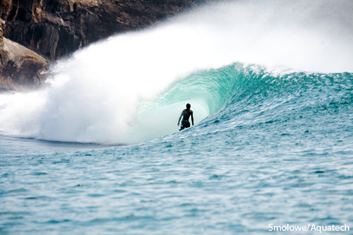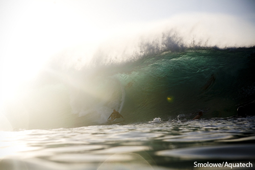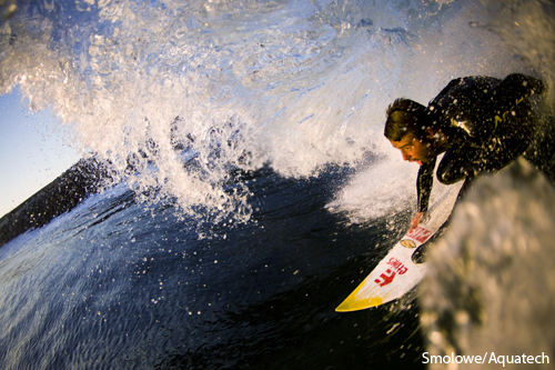 Мой выбор - Tokina © 10-17мм. Эффект «рыбьего глаза» делает задний план немного искривленным, но зато при этом дает возможность полностью акцентироваться на переднем плане. Типичный снимок «внутри трубы», который представлен ниже, требует от фотографа определенной смекалки - необходимо рассчитать свое местонахождение для снимка: знать, где сформируется волна, и в какой момент сёрфер будет находиться в наиболее выгодном положении для снимка. Для достижения такого снимка как этот, необходимо, чтобы объектив находился на расстоянии от 1-го до 3-х футов. Так что здесь должно быть все рассчитано - ибо ошибка может привести к травмированию как фотографа, так и серфера. Риск есть. Но когда вы получаете подобную фотографию - это стоит того - вы ощущаете себя волшебником.