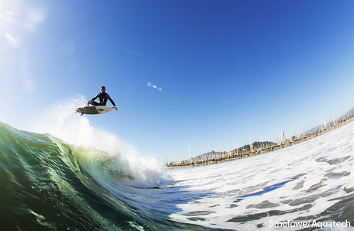 С помощью фишай (Fish Eye), вы также хорошо можете запечатлеть такие зрелищные трюки как, Big Turn или Air. Или же передать форму и размер волны, снимая её с близкого расстояния.