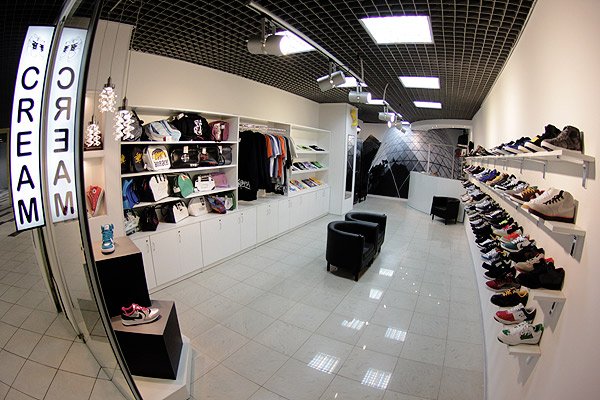 «Попасть в Cream — задача не из легких. Во-первых, нужно знать, куда именно нырнуть в укрытой строительными лесами галерее Апрашки (верный ориентир — пиццерия «Сбарро» ровно напротив), во-вторых, придется под испытующими взглядами продавцов пробраться через полную хмурых пиджаков лавку на второй этаж, где, в-третьих, в дальнем углу коридора важно не промахнуться мимо неприметного входа»