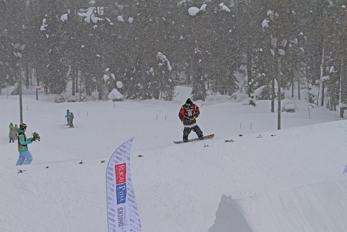 Первый раз в этом сезоне я выехал в январе Швейцарию, в Лаакс на Laafest и в лагерь в Италию в Ливиньо. А если сравнивать все лагеря куда я ездил в этом году, то больше всего мне понравился парк в Руке. Потому что тут: грамотные трамплины, вылет соответствует радиусу приземления, ты приземляешься и тебя не вбивает, все сделано грамотно, разнообразные рейлы, парк в котором может кататься и новичок и про, интересно всем. И самое главное это канатка, которая находится тютелька в тютельку с парком, ты не убиваешь кучу времени на супер спуск вниз до парка или от парка и потом не поднимаешься пол часа на креселке, как это было и в Швейцарии и в Италии.