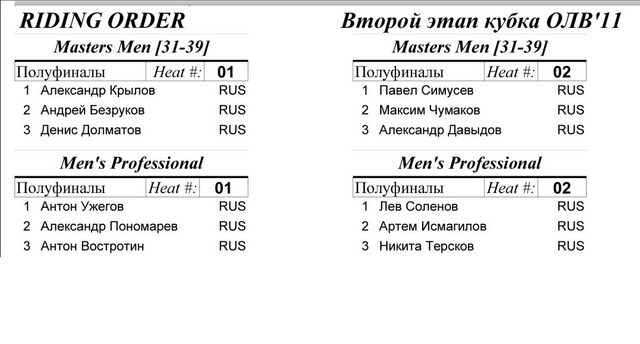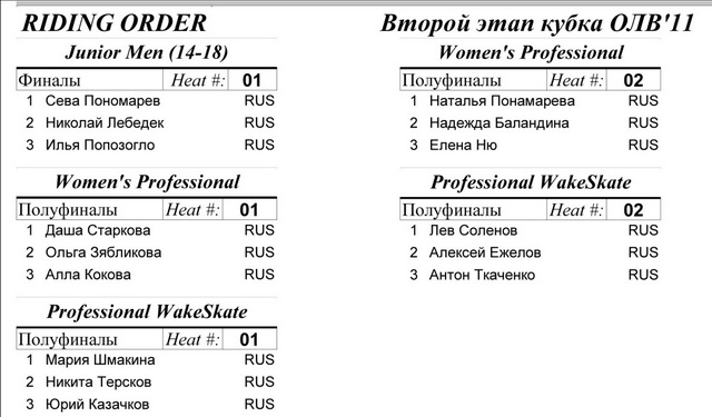 2 группы Open Women, 2 группы WakeSkate, 2 группы Masters, 2 группы Open Men
