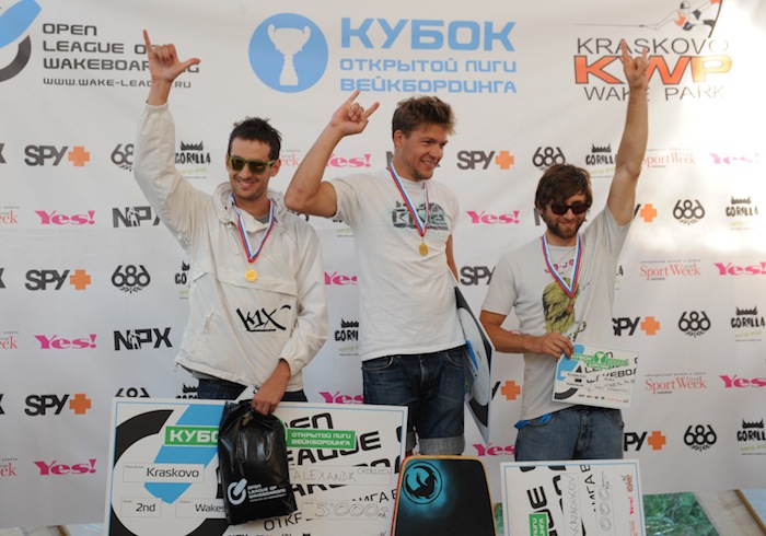 Александр Пономарев (г. Екатеринбург) – первое место на втором этапе Кубка Открытой Лиги Вейкбординга в Екатеринбурге - хороший джиббинг на фигурах и вращения на трамплинах, отличное владение switch трюками с флета. Никита Терсков (Санкт Петербург), как и Лев Соленов (г. Москва), принимает участие во всех этапах Кубка Открытой Лиги, показывает четкую и стабильную программу. Алмаз Смайлкулов (г. Егорьевск), занявший первое место в первом этапе Кубка Открытой Лиги Вейкбординга в Анапе, не смотря на травму, не давшую ему возможность участвовать во втором этапе Кубка Лиги, смог очень быстро набраться сил и показать новые трюки на третьем этапе Кубка. У парней была серьезная борьба и все шли бок о бок, Никита и Александр, в завершении своих попыток пробовали ставить switch back mob, но парням не хватило стабильности и трюки приземлить они не смогли. Финал выглядит следующим образом: