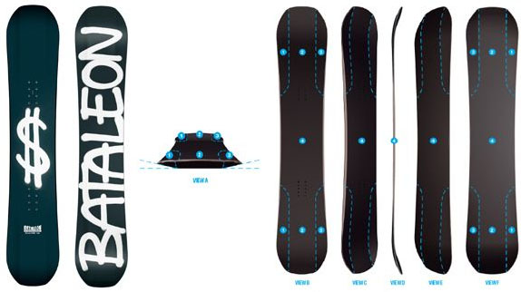 Bataleon всегда был немного белой вороной на европейской сцене сноуборд- индустрии. Созданная и управляемая райдерами компания из Нидерландов хорошо известна своим странным, если не революционным, дизайном досок. Bataleon является единственной компанией в индустрии, использующей технологию Triple Base. Вместо плоской базы доски имеют угловые секции, которые начинаются рядом с внешней стороной ступней. В результате трёхмерная форма обеспечивает свободный и лёгкий фристайл.