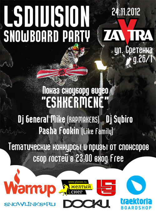 Дорогие друзья, рады пригласить Вас на шумную вечеринку LSDIVISION Snowboard Party.