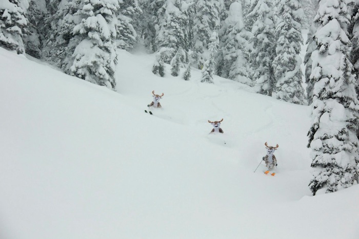 Ведущая российская хелиски компания Helipro выложила на своей странице Facebook компрометирующие фотографии. Тройка оленей в буквальном смысле этих слов – разъезжает на лыжах в заснеженном лесу, по всей видимости где-то в Канаде. На сноубордах замечены и другие звери. Кто именно скрывается под масками, держится в строжайшем секрете. Helipro наотрез отказались от каких-либо комментариев. Мы только можем догадываться, что под маской медведя выступает Максим Балаховский по прозвищу Baloo, а действие связанно с каким-то необычным видеопроектом. Если кому-то из наших читателей удастся выяснить какие-то подробности, просим обращаться в нашу редакцию!