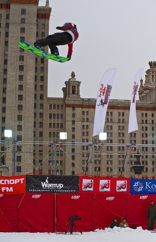 7 марта на Воробьевых горах напротив здания МГУ состоялся финальный этап Кубка Мира FIS сноуборду в дисциплине биг-эйр. Это было очень масштабное мероприятие, в котором приняли участие райдеры мировой величины - Штефан Гимпл, Юрий Подладчиков, Марко Грилч и многие другие.