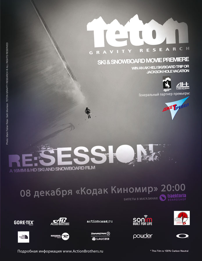 8 декабря в Москв состоится премьера нового видео Re:Session. Этот фильм выходит далеко за рамки традиционных лыжных и сноубордических фильмов погружая нас в революционную сферу экшн спорта. Фильм снимался как на пленку, так и на камеры последнего поколения. Re: Session богат захватывающими моментами в горах всего мира.