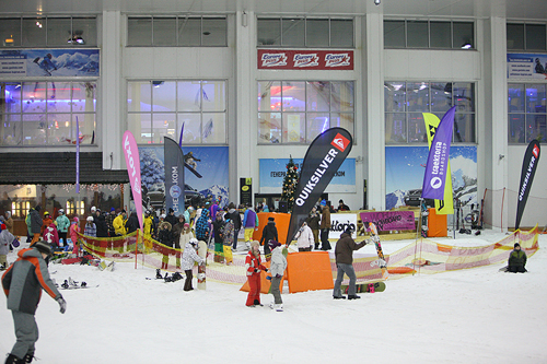 На время вселенских затупов всех спасала согревающая атмосфера зоны Apres Ski. Здесь можно было уталить жажду подмороженным Москвасом, который напоминал мороженное щербет, согреться, попив горячего кофе от Starbucks Coffee, поесть сосисок, посушать миксы от Lame Dj’s, которые, к сожалению, не смогли принять участие в мероприятии лично, но прислали свой Ipod в качестве представителя, а так же принять участие во множетсве веселых, нелепых и безумных конкурсов от магазина Траектория и Quiksilver. Учатники состязаний, не теряя времени в перерывах между сетами, тренировались с командой инструкторов Top4Jump на батуте.