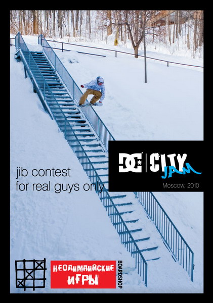 Напоминаем, что DC CITY JAM - совместный проект DC SHOES и сети бордшопов «Неолимпийские Игры» - серия уникальных стрит-контестов для неспонсируемых райдеров, которые пройдут на оригинальных московских спотах. В распоряжении участников - то, что дал нам город-реальные перила и грани. Соревнования будут сняты на видео, а по итогам - смонтирован фильм. Контесты пройдут в формате джем-сессии, победителей ждет тонна призов: за каждое первое место - по сноуборду DC, куча полезного стаффа и подарочные сертификаты от магазинов "Неолимпийские игры" для всех призеров.