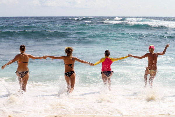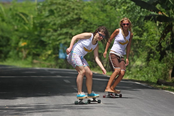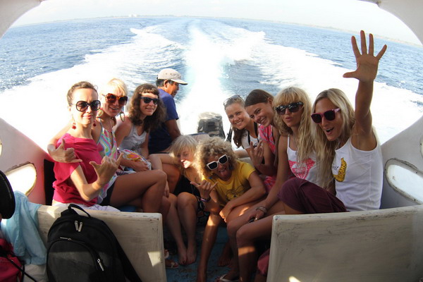 Глаза японских серферов открылись очень широко, когда они увидели русских девчонок в ярко розовых майках с желтым бананом, выплывающих на лайнап. Локалы подбадривали крича: «Грыбы, Грыбы!!! Встаааааааааааааа-ваай!!!». Каждый раз после катания мы душевно сидели в кафе на берегу океана, попивая свежевыжатые соки и обсуждая свои победы на воде. Новоиспеченные серферши быстро прогрессировали и в Куте кататься им стало уже не интересно. Мы решили устраивать серф трипы каждый день. Помимо Чангу девчонки ловили волны на спотах Нуса Дуа – Mushroom Rock и Black Stone. На закате приобрести гармонию с собой и восстановится после каталки девушкам помогала йога. Вечером занятия проводила Виктория Кершис (в прошлом профессиональная балерина).