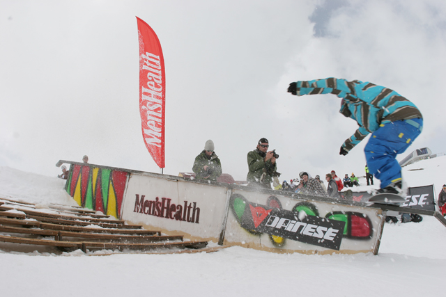 Соревнования по джиббингу Men's Health Rail Masters намечены на 10 апреля 2010 года. На сегодняшний день есть две потенциальные точки их проведения. При достаточных снежных условиях внизу, в поселке Домбай (который расположен на высоте 1600 метров над уровнем моря), старты пройдут в районе "нижнего лягушатника" – учебной трассы рядом с гостиницей "Домбай". А если снега будет все-таки недостаточно, то джиб-конструкция будет смонтирована у гостиницы "Тарелка" у верхней станции Маятниковой канатной дороги (2200 метров над уровнем моря). Там снег будет точно!