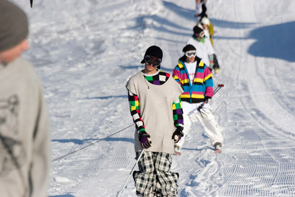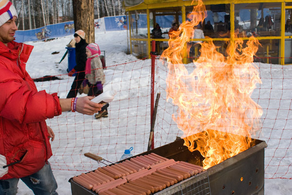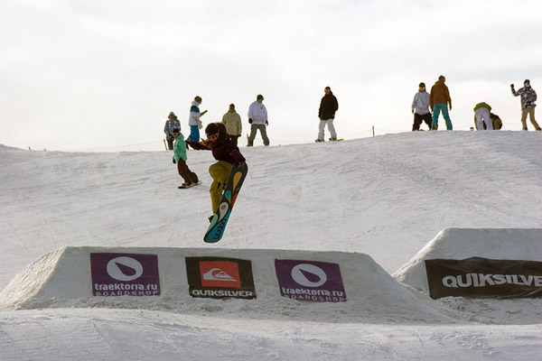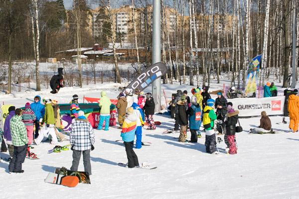 Внизу парка была организована chill out зона, где играла музыка, раздавали бесплатный Red Bull, пиво Salitos и сосиски гриль от нашего шеф-шейп-повара Никитоса. Яркое солнце и мягкий снег напоминали весенний лагерь на Домбае, что задавало хорошую атмосферу и помогало всем участникам хорошо настроится на контест.