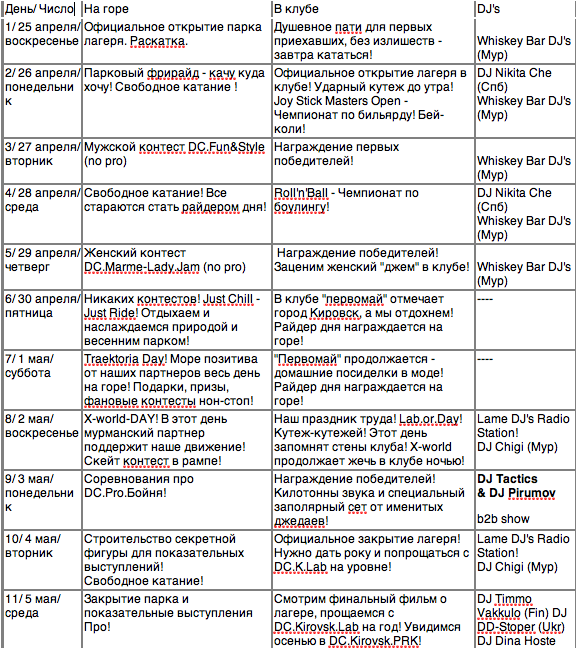 Расписание работы лагеря DC.Kirovsk.Lab 2010