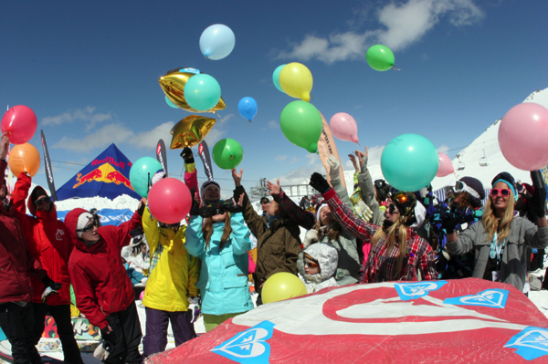 Зато в ходе соревнований Rock'n'Roxy для сноубордисток-любительниц были открыты все трамплины – на учебной линии соревновались начинающие, на профессиональной демонстрировали мастерство судьи. В завершении "рок-дня", перед самой крутой вечеринкой в стиле рок, гости и участники лагеря выпустили в яркое голубое небо десятки воздушных шаров, на которых предварительно написали свои самые сокровенные желания. Шары разлетелись, обещая желаниям сбыться…
