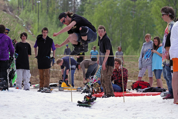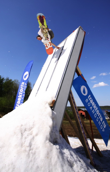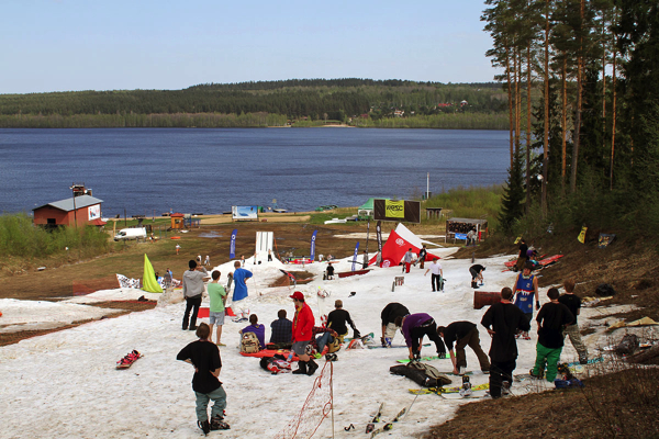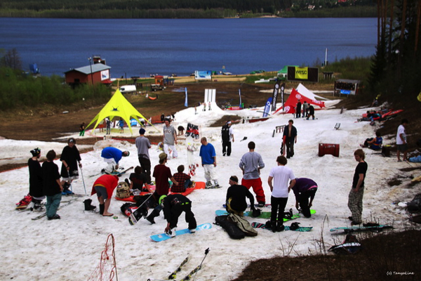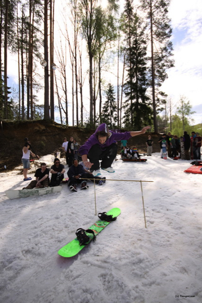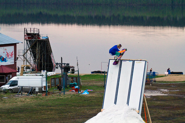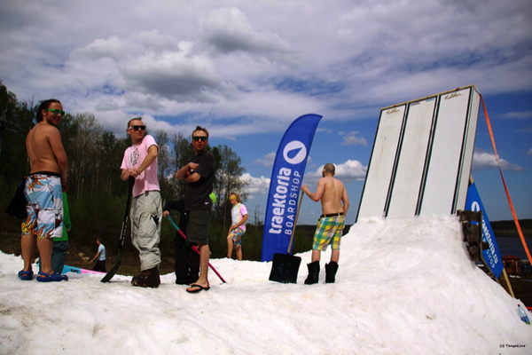 +28 и снег – это круто, но когда такая температура стоит на протяжении всех дней лагеря это уже опасно. Поэтому к субботе 2 из 4 серии фигур были перенесены на 30 метров правее изначальной линии, что бы возможность проезжать все в серию сохранялась.