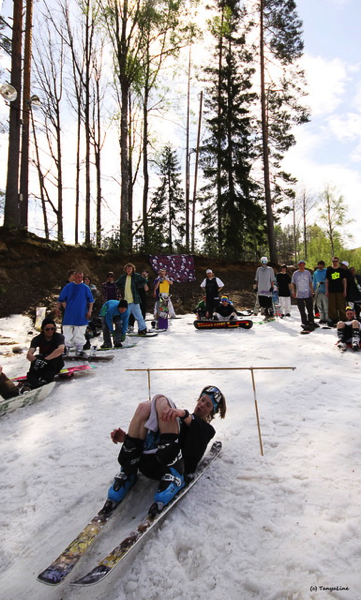 Сразу же после этого, были поданы горячи сосиски, что бы восполнить силы и побороться на рядом стоящей ритм секции (полджем, бочка, гробик, перила) на которой был проведен контест на лучший проезд. На кону стоял комплект от Santa Cruz ( доска и крепления ). Доску взял Бонус, а за крепы лично разбирались Грин и секретный перень из Самары, так как оба проезжали ван футом по всей линии.