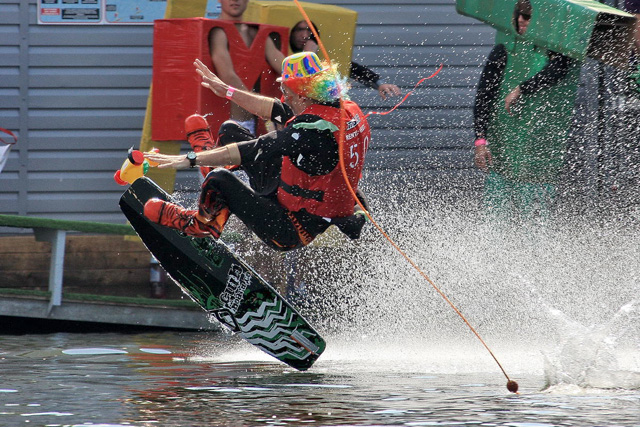 Событие это не похоже ни на одно из множества проходящих ныне соревнований по вейкбордингу! Дело в том, что главным условием для участников является наличие карнавальных или иных костюмов, ярко выражающих какой-либо образ. Причем снаряд, применяемый для скольжения по воде, не регламентирован!