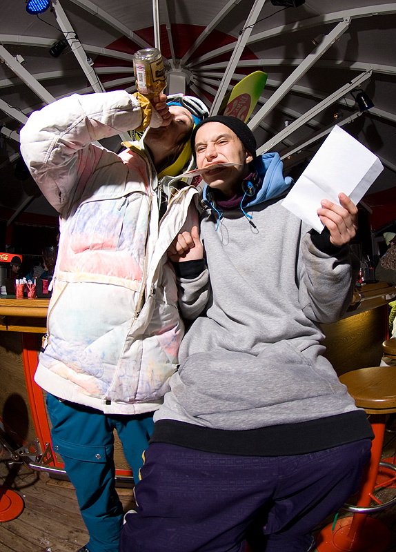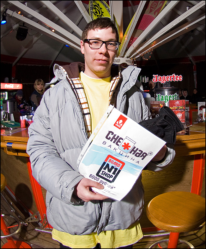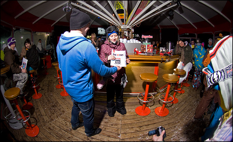 После финала участники были приглашены в Riders Bar 720, чтобы оттаять, прийти в себя, пообщаться с друзьями, поглазеть на легенду российского сноубординга Леху Осовицкого, который мужественно остался до конца, судил финал в кедиках и без перчаток, ну и разобрать заслуженных слонов.