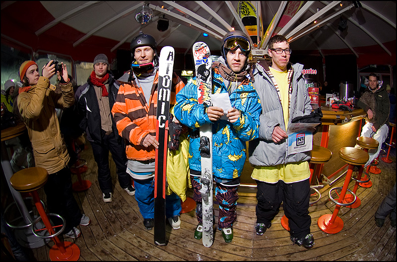 Выбор победителей оказался ой каким не простым, в результате чего возникла беспрецедентная необходимость пересмотра всех финальных попыток на видео. Стас Корбут, Михаил Подгорский и Алексей Осовицкий никак не могли прийти к единой матрице. Пивас не помогал, от сигаретного дыма и перчаток Антон Палыча слезились глаза, споры спорились по всей строгости. И в итоге всей борьбы за идеал скольжения нарисовались нижепредставленные: