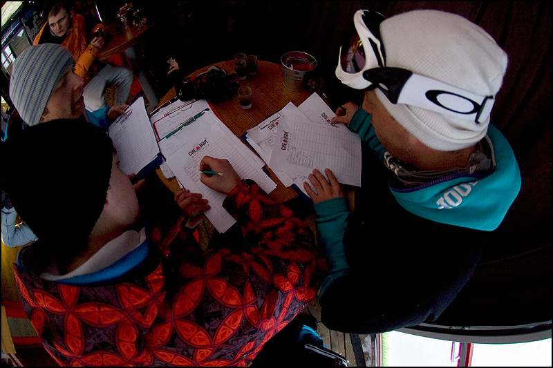 После джема все бегом отправились греться: кто в прокат, кто в бар. По итогам в финал прошли 9 парней, 4 девочки и 4 лыжника. Выбор дался легко и практически единогласно.