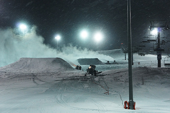 На горнолыжном курорте Игора уже в полную силу готовится трасса Quiksilver NewStar, на основном склоне уже насыпаны 2 огромные снежные кучи под приземления трамплинов. Трасса будет расположена по длине всего склона №5.