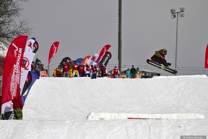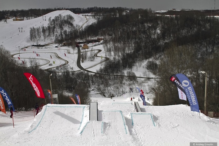 Напомним, Traektoria Park powered by Quiksilver был перестроен и оформлен специально под Игры. Абсолютно новая серия: джиб + кикер 11м. + джиб. Эта же серия и простоит до конца сезона. Снега должно хватить еще минимум на неделю штатной работы парка.