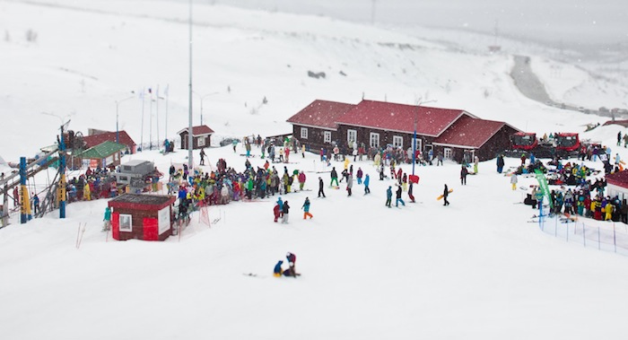Погода в горах, как известно, вещь непредсказуемая. Погода в Кировске – вещь непредсказуемая вдвойне. Поэтому ничего удивительного, что 23 апреля, в день открытия парка и лагеря, случился настоящий апокалипсический буран. Все предыдущие дни парк был закрыт для райдеров, поэтому в день открытия многие встали пораньше, чтобы первыми наброситься на кикеры и рейлы. Горнолыжный склон встретил ребят шквальным
