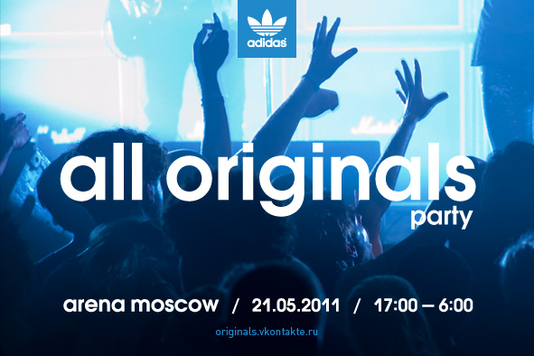 21 мая в клубе Arena Moscow состоится грандиозная вечеринка Adidas all originals party. В третий раз Adidas Originals соберёт своих друзей и устроит невероятное зрелище. Самые активные, яркие и позитивные жители мегаполиса соберутся в одном месте и окунутся в атмосферу Original-ности, праздника и отличного настроения.