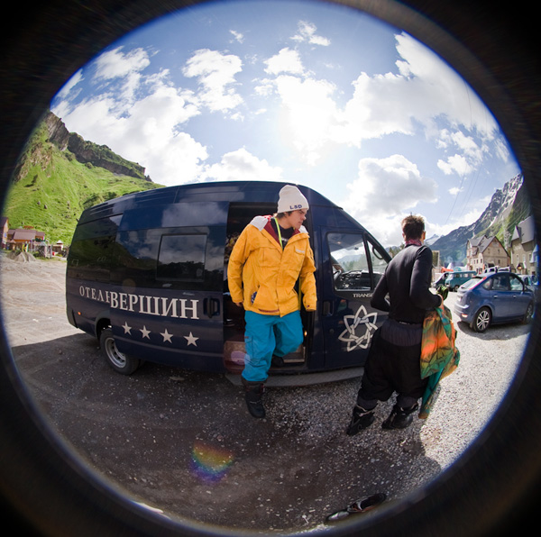 Начнем с того, что окончательное решение поехать на Эльбрус помогла принять администрация гостиницы «7 Вершин», которая любезно открыла свои двери для всей съемочной группы, операторов, фотографов и райдеров. Главными действующими лицами поездки стали Николай Биланин и Николай Ерохин, московские про, состоящие также в РГШ.