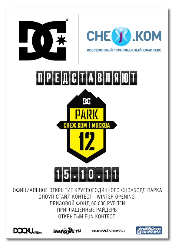Спешим сообщить, что в эту субботу, 15 октября, состоится официальное открытие парка DC 12 Park. В его рамках пройдет контест DC Winter Opening для специально приглашенных райдеров с общим призовым фондом в 60 000 рублей.