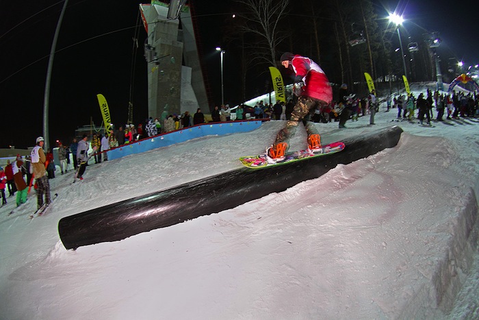 С утра до позднего вечера на склоне по случаю пятилетнего юбилея фанпарка шли праздничные старты собратьев наших карверов, параллельно гудела шоу-программа и проводились конкурсы для подрастающего, неопределившегося еще, поколения. Тем временем райдеры из Красноярска, Уфы и близлежащих городов раскатывались перед главной вечерней битвой. В рядах был даже замечен один московский райдер - Макрушин Дима. И под конец праздника народного стартовал праздник экстремальный! Под залпы юбилейно-феерического салюта началась ожесточенная битва закаленных Сибирских парней и девчонок за внушительный, для местечкового контеста, призовой фонд. Что случилось ,в общем-то, впервые в истории городских ивентов.