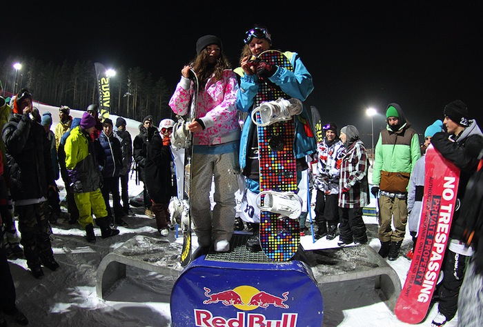 Спонсоров и партнеров мероприятия набрался приличный список, поэтому кроме традиционных призов (денежек и стаффа) были и совсем не сноубордические, но не менее ценные. Например, среди девушек лучшей оказалась Татьяна Кулагина, за что и получила подвеску с 4-мя бриллиантами от Ювелирного Дома Ремикс.