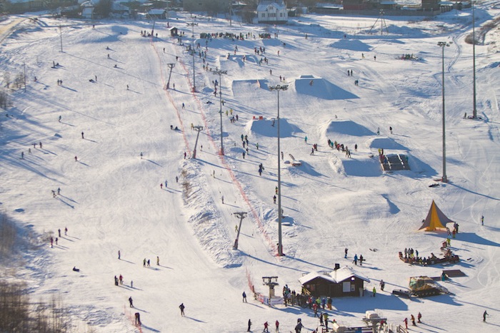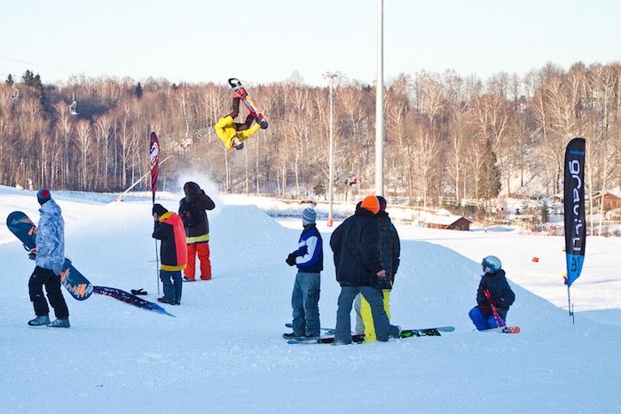 комфортное расстояние. Прыжковая линия состоит только из двух трамплинов, но я думаю, что в будущем она станет немножко длиннее. Очень понравилось большое количество народу. Давно не видел столько катающихся сноубордистов, сосредоточенных в одном месте. Хорошая музыка, изобилие сосисок и кетчупа помогли восстановить силы в середине катального дня. Парк был замечательно отшейплен и все перила хорошо, даже слишком хорошо скользили.»