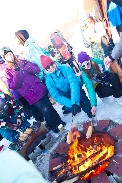 Итак, к концу фан-сессии все начали спускаться вниз, где могли покушать вкусных сосисок, пожаренных на костре, и выпить горячего чая! А те, кому не хватало адреналина в крови, заряжались энергетическим напитком Tornado Energy.