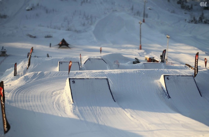 Несмотря на большой минус (около – 20 градусов) на склоне было по-настоящему жарко. Для участия в соревнованиях зарегистрировалось более 40 участников. Новый парк, день рождения курорта, качающий саунд, крутой фристайл от MC - все задавало настроение хорошему контесту. Участникам были предоставлены две серии по три фигуры в каждой серии: верхние биг-эйр 9м или роллер 6м, затем роллер 12м или спайн 5м, внизу - фигура из бокса и ап-бокса.