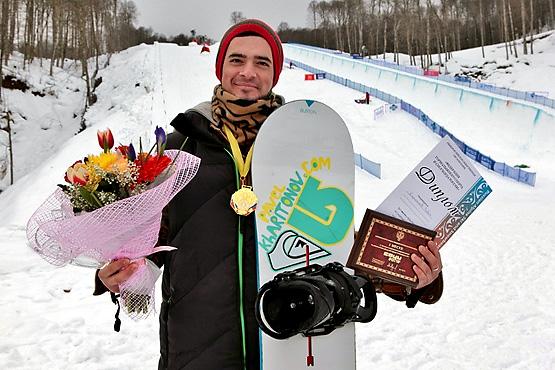 Павел Харитонов во второй попытке показал отличную связку прыжков и даже, несмотря на трюк фронтсайд 1080 с грэбом, но с «грязным» приземлением, смог удержать лидерство. Сергей Тарасов - лидер Кубка России в этой олимпийской дисциплине также пошел на риск, но не смог приземлить вращение на 900 градусов во второй попытке, таким образом откатившись на четвертую позицию. Теперь в общем зачете Кубка России 2011-2012 года по фристайл-дисциплинам сноуборда у Сергея Тарасова вторая позиция, а в лидеры вышел Павел Харитонов – 180 очков за два этапа. Замыкает тройку лидеров Кубка России Прохоров Артур из Ленинградской области, который на 30 баллов опередил Сладкова Александра из Москвы.