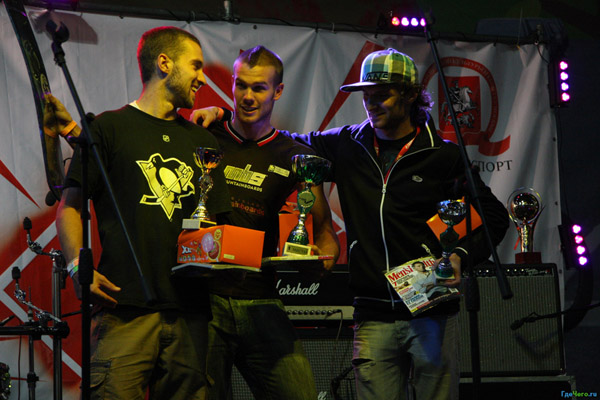 Благодаря слаженной работе компетентной судейской бригады, состоящей из Георгия Стеценко, Федора Разуваева и Александра Павлова «Пал-Пала», места были распределены следующим образом: грамотно спланированная стратегия выступления привела Джереми Лифа, выступающего на доске Pro 100 Leon Robbins, к первому месту. Павел Пешин взошел на вторую ступеньку пьедестала, а заодно и удостоился звания Чемпиона России по маунтинборду. Третье место пришлось поделить между Ником Хиллом и Алексеем Потаповым — настолько близко оказались их трюки по сложности и очкам. Олегу Мельникову, из-за нескольких недокрученных попыток 720, пришлось довольствоваться четвертым местом с fsrodeo540 nose, fs 360stail и backflip tail.