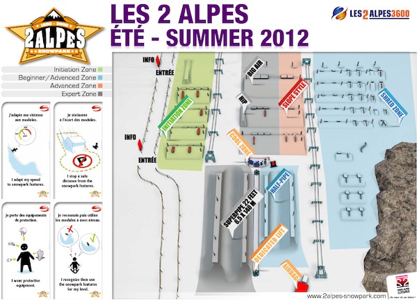 Добро пожаловать в ежегодный ски & сноуборд лагерь Acamp на французском курорте Les Deux Alpes, куда летом съезжается большинство райдеров со всего мира ради катания в легендарном сноупарке. Представляем вашему вниманию схему парка 2012.