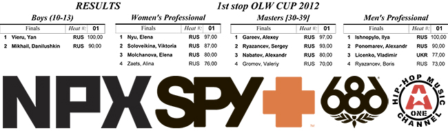 В первом этапе Кубка ОЛВ 2012, приняли участие 31 спортсмен из 11 городов России (Анапа, Волгоград, Егорьевск, Екатеринбург, Краснодар, Майкоп, Москва, Нижний Новгород, Пермь, Славянск-на-Кубани, Ставрополь) и из 2-ух городов Украины (Днепропетровск и Запорожье).