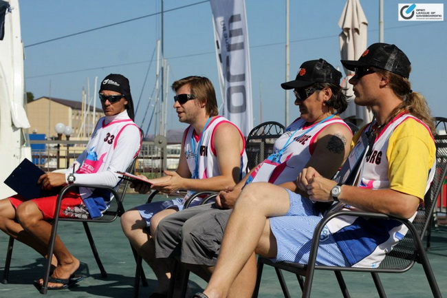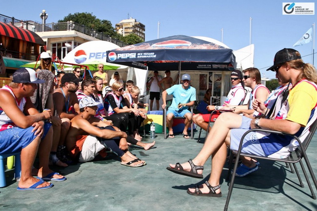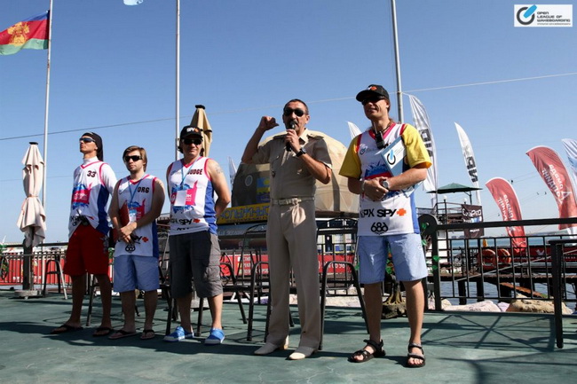После приветственного слова, начинается собрание райдеров, на вопросы вейкбордистов отвечает судейская бригада в составе: Романа Бутко, Александра Терскова, Вадима Лымаря и Сергея Рязанцева.