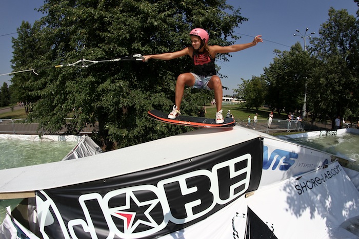 От сильной половины человечества не отставали прекрасные дамы – на площадке были замечены чемпионка России по кабельному вейкборду Даша Ляленкова и самая