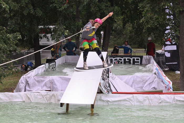 опытная девушка-вейкскейтер столицы Маша Степанова, исполнявшие трюки под качественный рок (музыкальное оформление вейк-площадки в Лужниках всегда на