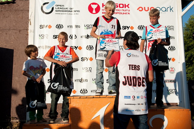Первыми, как и полагается, открывают соревнования дети, где достойно заявил о себе Константин Цуранов, приняв участие в двух этапах Кубка ОЛВ 2012 и заняв стабильно 2 вторых места, смог заполучить Кубок Открытой Лиги Вейкбординга 2012 в категории Boys.