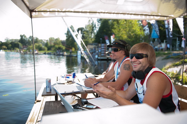 Ровно утром, в 11:30, происходит собрание райдеров, судейская бригада в составе: Романа Бутко (главный судья), Александра Терскова и Алексея Варфоломеева, подробно объясняют правила судейства WWA(World Wakeboard Association).