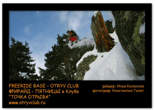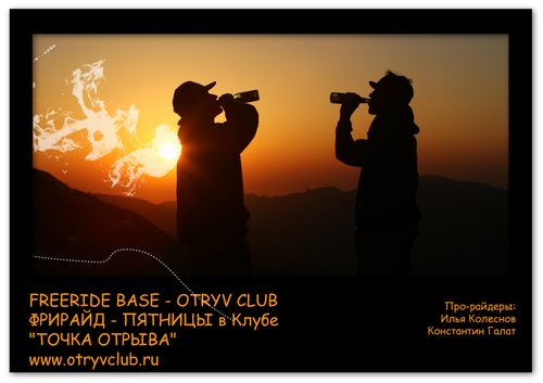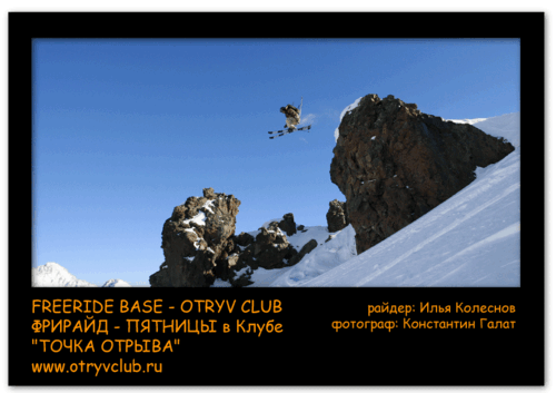 Раз в две недели, по Пятницам - открытые вечеринки для всех увлеченных внетрассовым катанием и их друзей: - Dj сеты от Паши Шевелева и Ильи Колеснова; - Освещение мировых этапов и этапов Кубка России по фрирайду, а также других значимых событий; - Презентации новых брендов и информационных ресурсов; - Отчеты с соревнований и награждения; - Показы новейших видео и фото презентации; - Горячие конкурсы с призами; - Набор детей в бесплатную горнолыжную секцию Ильи Колеснова; - “Make Your Party” – возможность участия в мероприятиях.