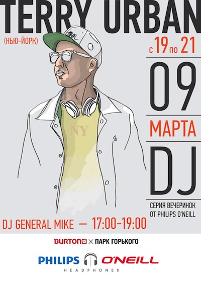 К официальному закрытию BURTON x ПАРК ГОРЬКОГО, как и обещали, мы подготовили особенную вечеринку Philips O’Neill! 9 марта нашим гостем станет DJ Terry Urban из Нью-Йорка! Терри Урбан завладел сердцами поклонников с того самого момента, как ворвался на сцену со своими DJ-сетами и микстейпами. От Гонк-Конга до Хьюстона - Терри взорвал ночную жизнь по всему миру! А его скандально известные микстейпы и мэшапы заслужили похвалу звёзд мировой величины, таких как Jay- Z, LeBron James, Kanye West, Coldplay и Квентин Тарантино.