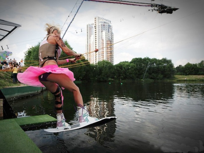 Кстати, кататься на фан-контесте можно буквально на всем, что может передвигаться по воде. Традиционно это вейкборд и вейкскейт, но были участники, которые катались на водных лыжах, на… тазах и даже на пятках!